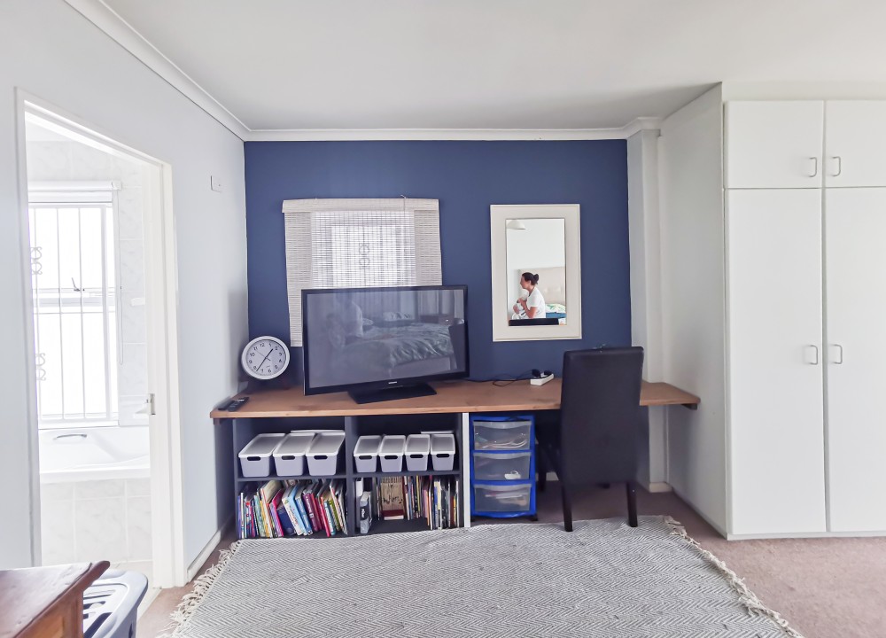 1) Large main with super king-size bed and an ensuite, TV, and study nook.