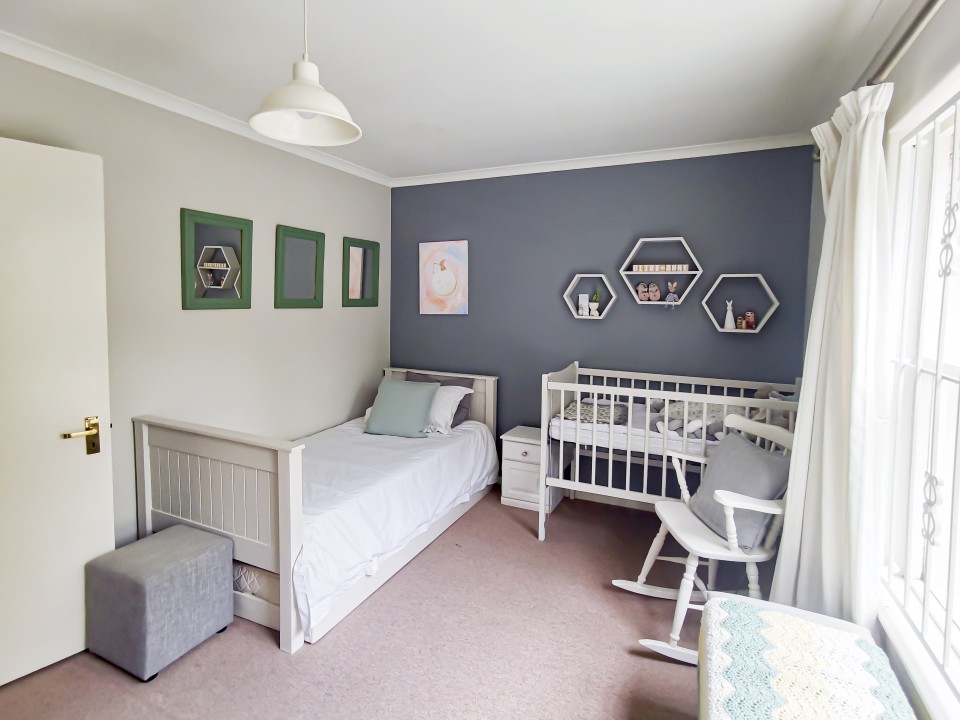 3) Kiddies room with 2 single beds and a cot for a baby