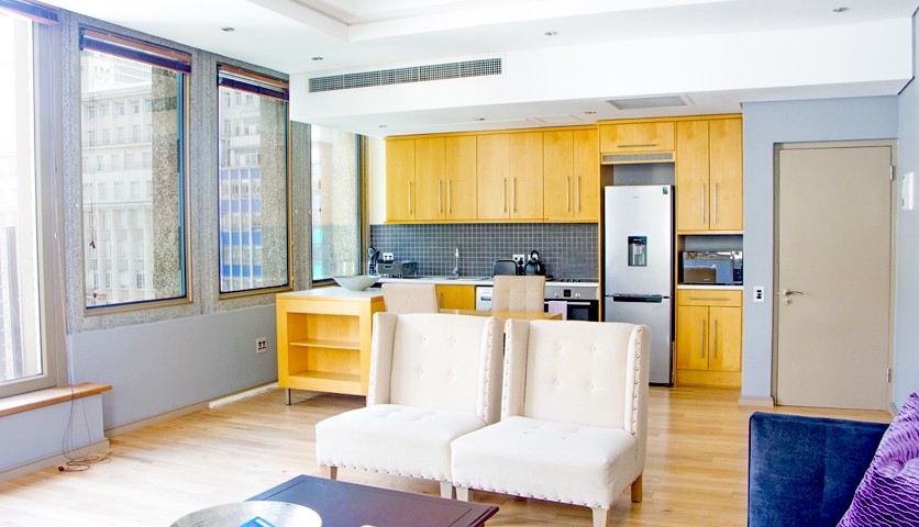 Apartment Stormi is a 1-bed, 1-bath apartment located in the prestige development called Cartwrights Corner on the corner of Darling and Adderley Street, in the city centre of Cape Town.