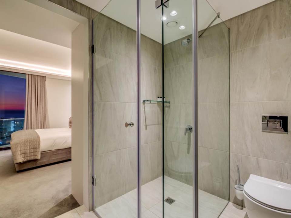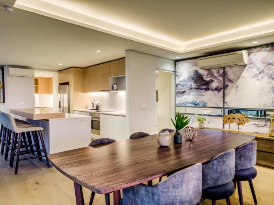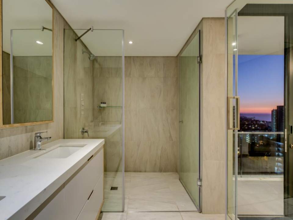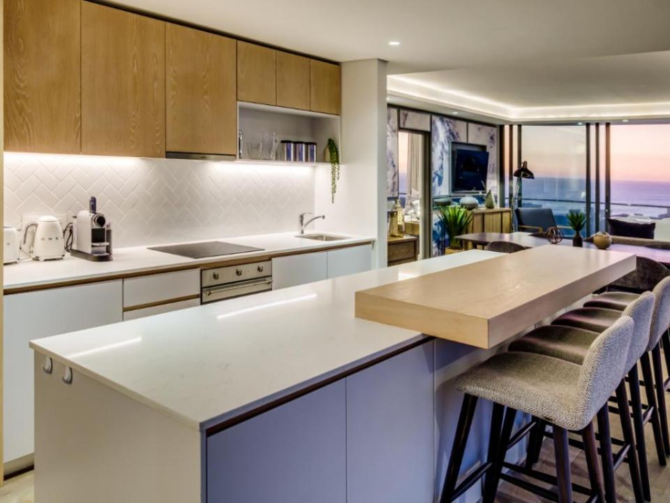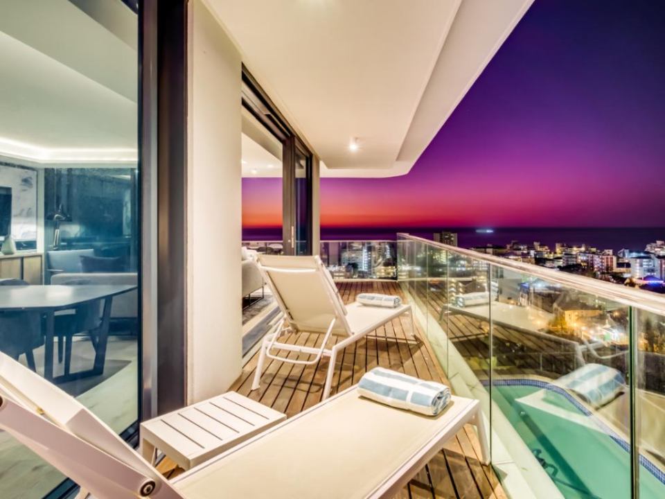 Visit this incredible city penthouse with panoramic views and luxury interiors. This penthouse apartment is fully equipped with all modern appliances and comforts for a brilliant stay in Cape Town. The lounge area has a large TV and plush seating, perfect for a movie night in. The dining space is light and spacious and both these areas lead onto the private balcony. The kitchen has all you will need for a holiday rental. The master and second bedrooms have TV’s and access to the balcony. All the bedrooms have their own bathrooms and aircon. This apartment makes for an incredible stay in Cape Town, relax in luxury while enjoying the beautiful city and ocean views.