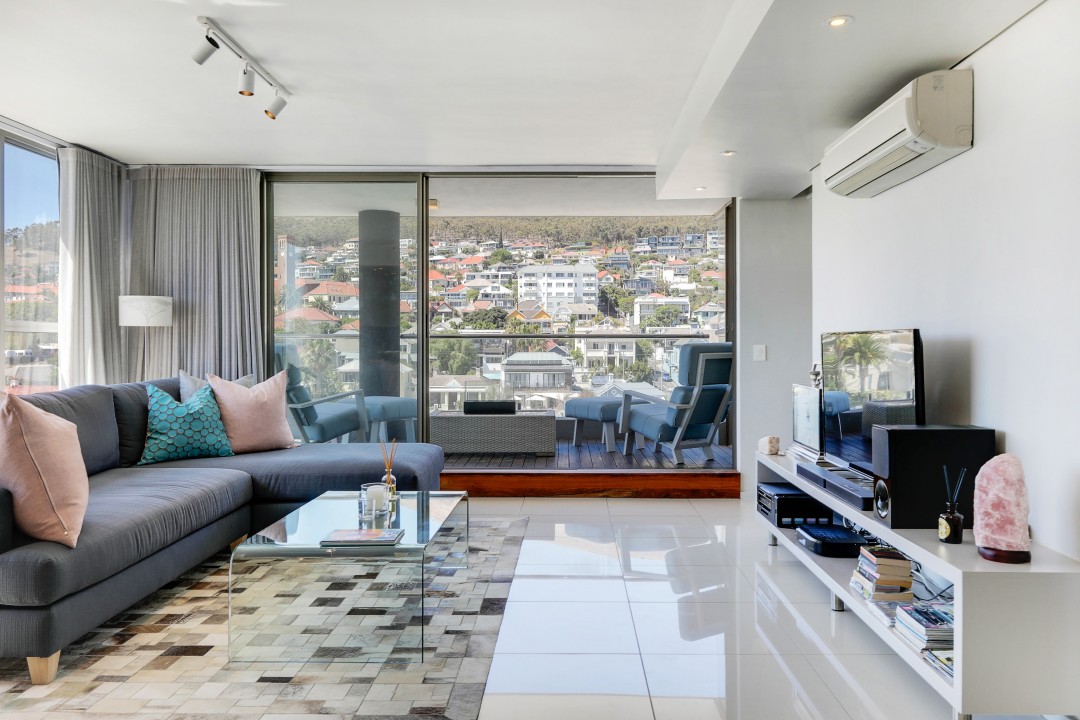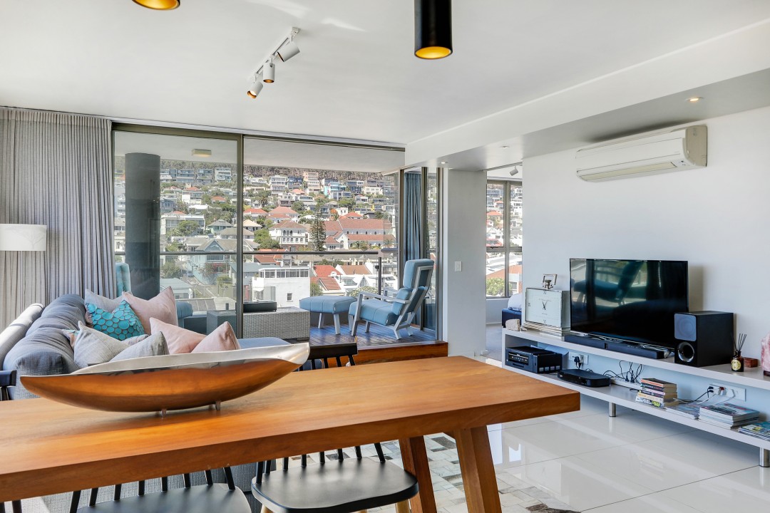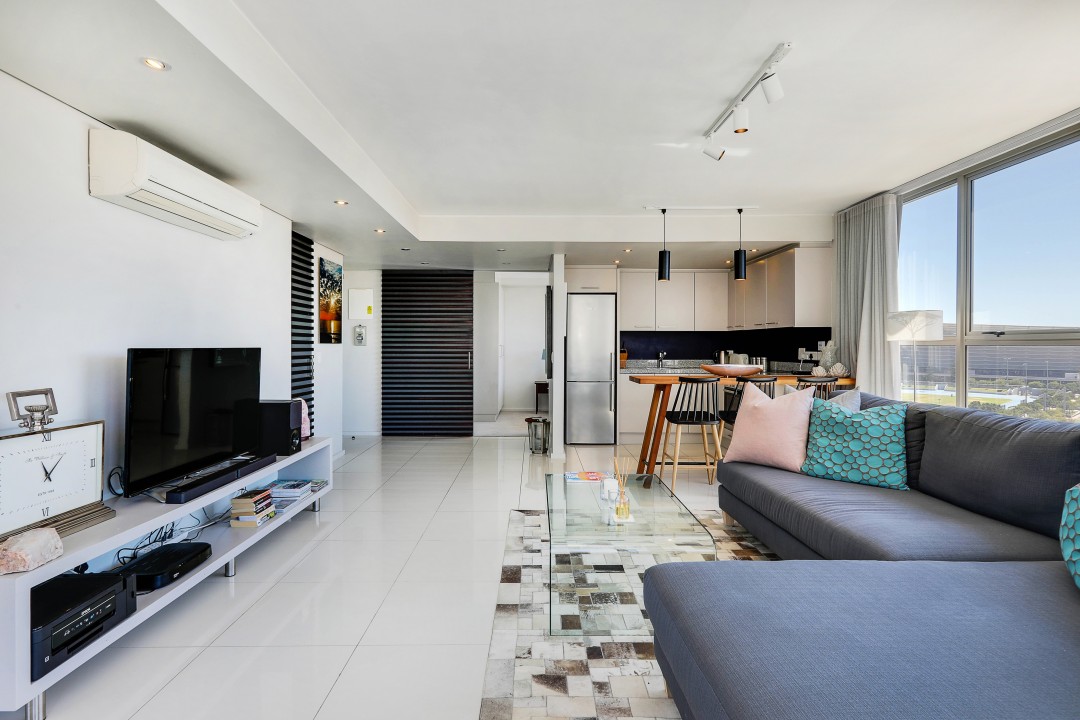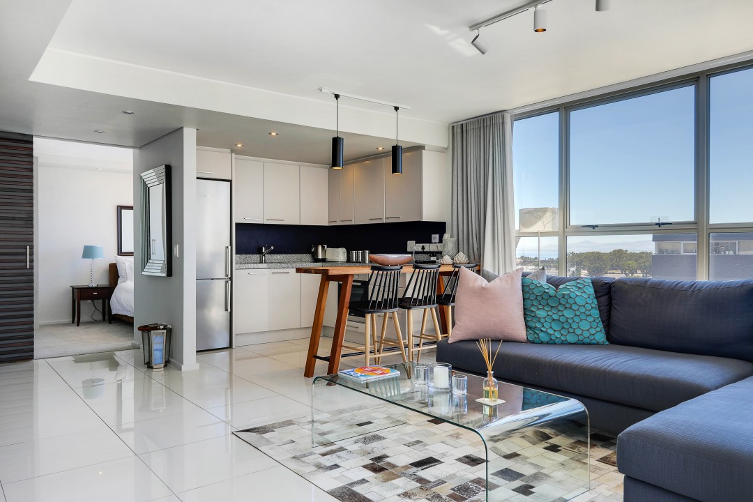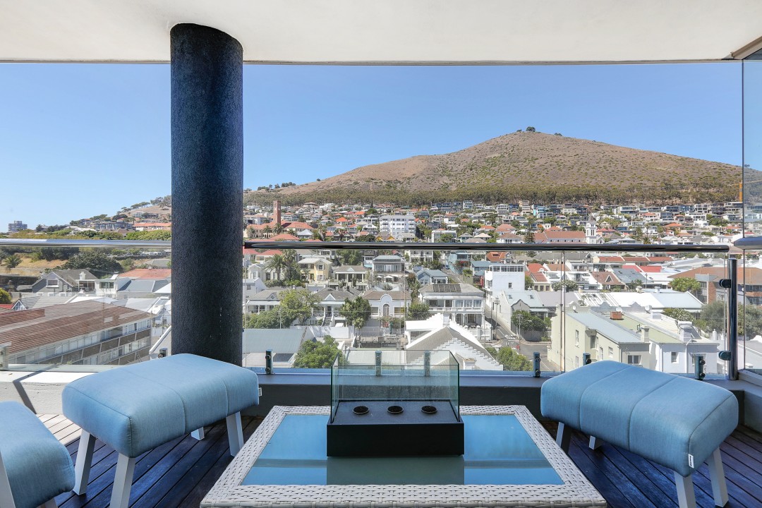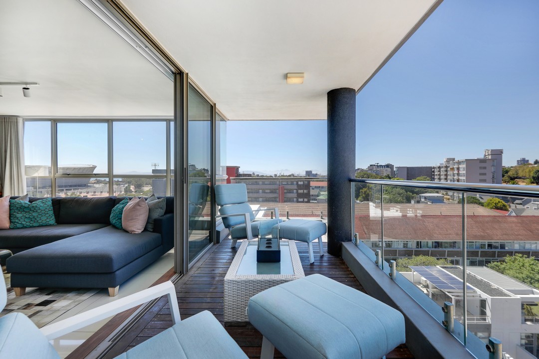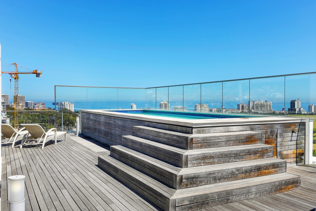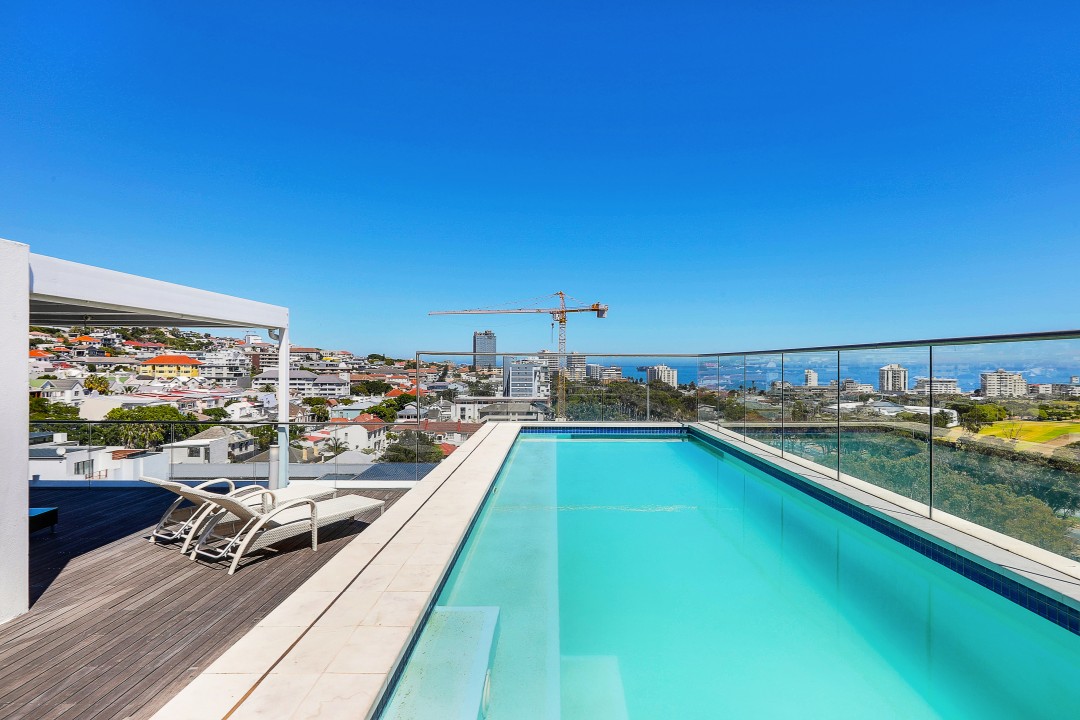 A beautiful penthouse apartment with shared roof top pool overlooking the Atlantic ocean over a Green Point golf course and stadium. Perfectly located for easy access to bars and restaurants and the V & A waterfront centre.