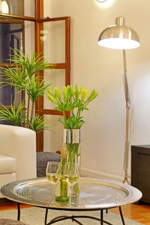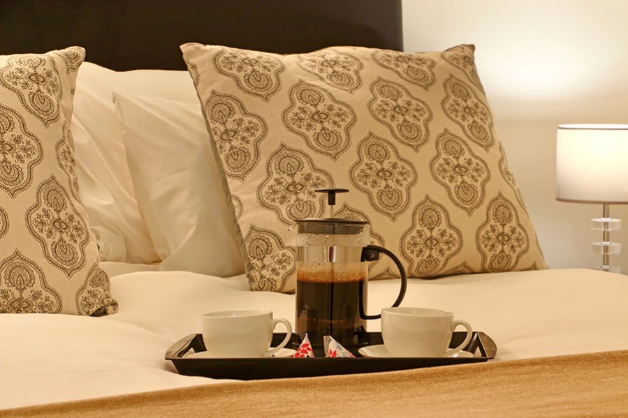 It’s beautifully furnished with soft colours for a feeling of tranquility, while right outside the city is in full swing.