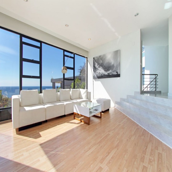 Modern, luxury 500m2 villa offers wrap around sea views from every room. Total privacy from huge entertainment areas, all leading out onto a swimming pool. 4 bedrooms.
