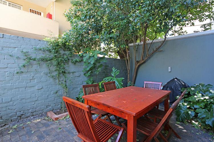 The outside area has a private stoep (veranda) with access to the back courtyard along a side passage. The cosy back courtyard is equipped with a table and chairs for six and a weber braai (BBQ).