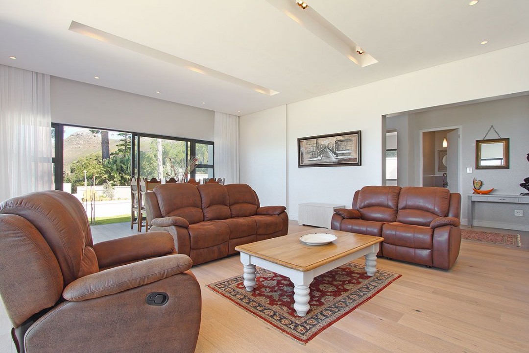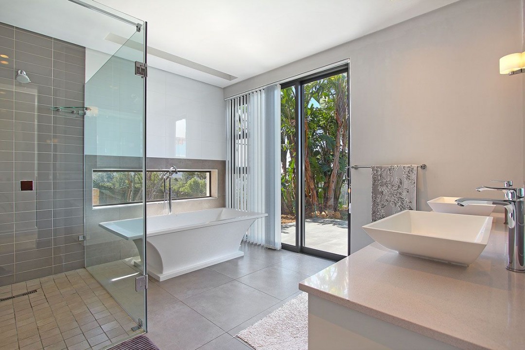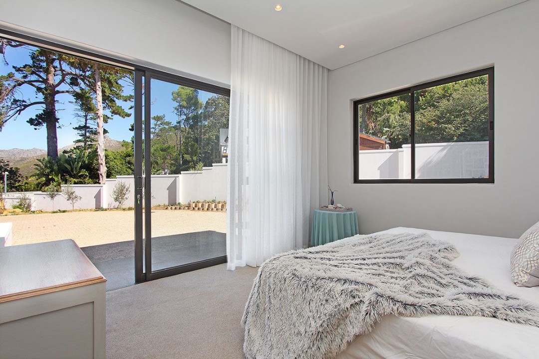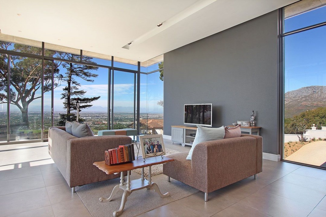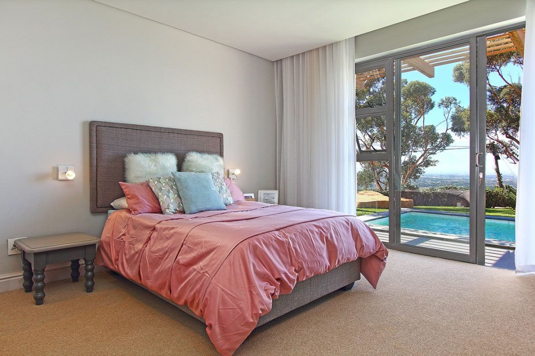 This Constantia Modern 5 Bedroom Self Catering Villa was designed for people who want to be together when awake but private at night. You may decide to never go anywhere. This is peace. Set high against the mountainside you’ll find this spacious, modern 5 bedroom villa sleeping a maximum of 10 adults and 2 children.