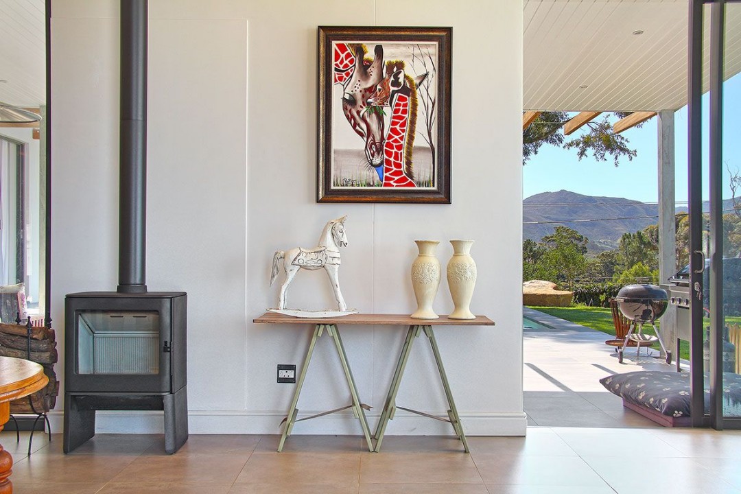 The main level, leading to the pool and garden, has four bedrooms, the kitchen (with scullery) and the living area and lounge. On the lower level is a private, fully independent apartment for two adults and two kids with kitchen and bathroom. This apartment has private access and is not accessed direct via the main house – you walk via the driveway to the main entrance.