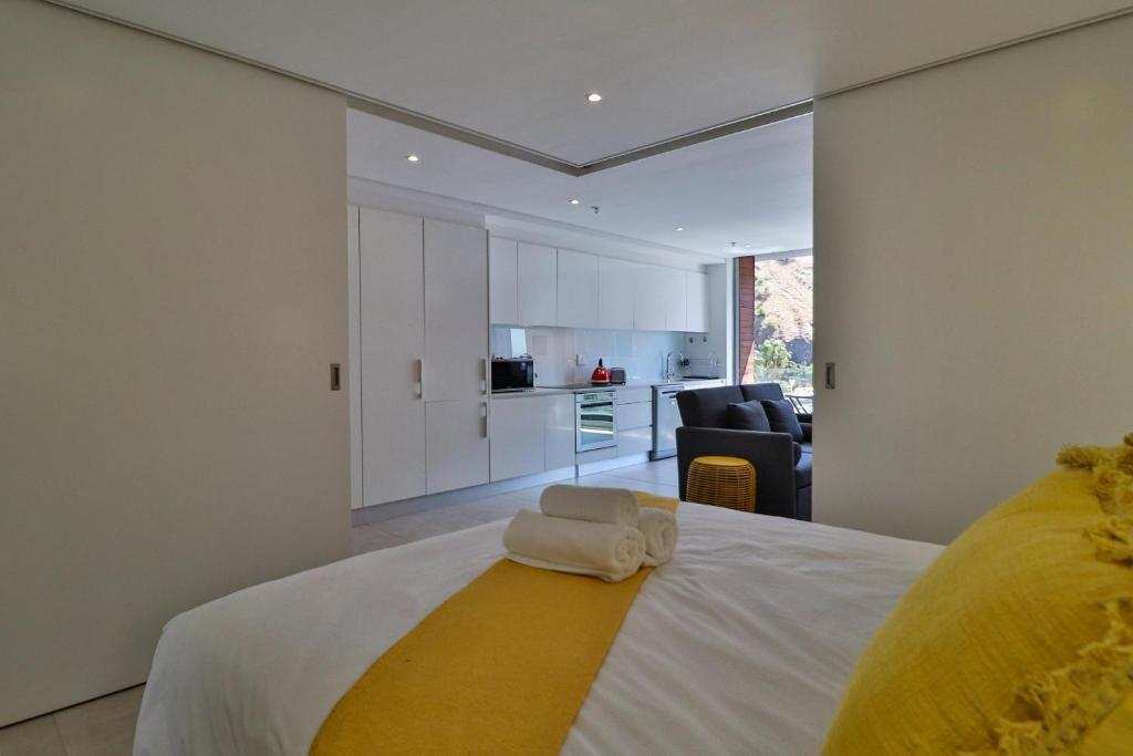 The Capital Mirage 704 by CTHA offers a comfortable One Bedroom Self Catering Apartment with a sleeper couch. Fully stocked Kitchen, en-suite bathroom, and inviting lounge with large Smart television. Whether you’re seeking leisurely lunches, rooftop cocktails, trendy nightclubs, or retail therapy, The Capital Mirage puts it all within strolling distance. In close proximity to Cape Town Cruise Terminal, Zeitz Museum of Contemporary Art, Cape Town International Convention Centre, local Markets, and the V&A Waterfront. The streets are lined with art galleries, boutiques, restaurants, interior decorating shops, tapas bars, and sidewalk cafes which have been inspired by the romantic boulevards of Paris. Be amazed by the panoramic views from the rooftop restaurant & Sky Bar. Enjoy complimentary uncapped Wi-Fi and parking. Swimming pool on the roof, a gym, and a spa. The building features a fashion, food, and entertainment hub with vibrant, cosmopolitan energy.
