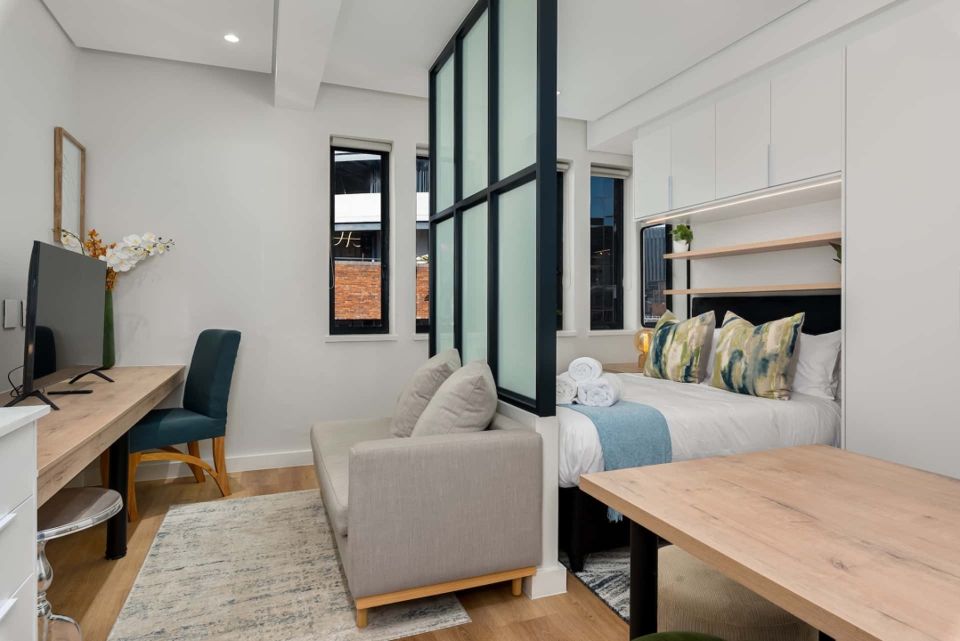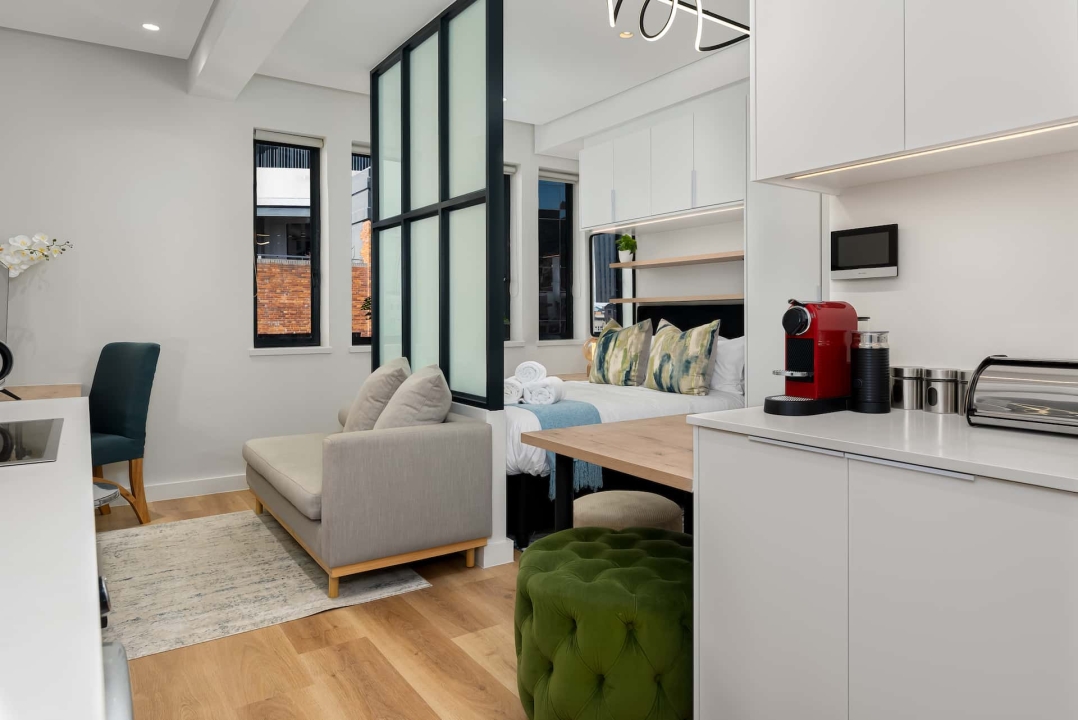 - Serviced studio and one-bedroom apartments