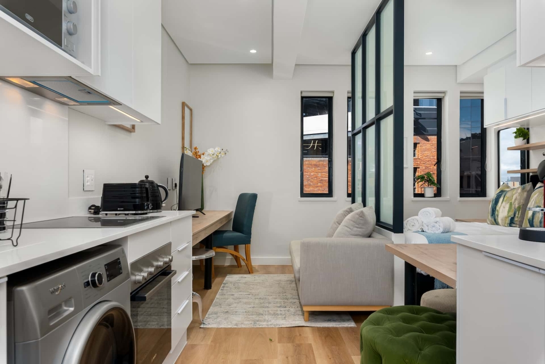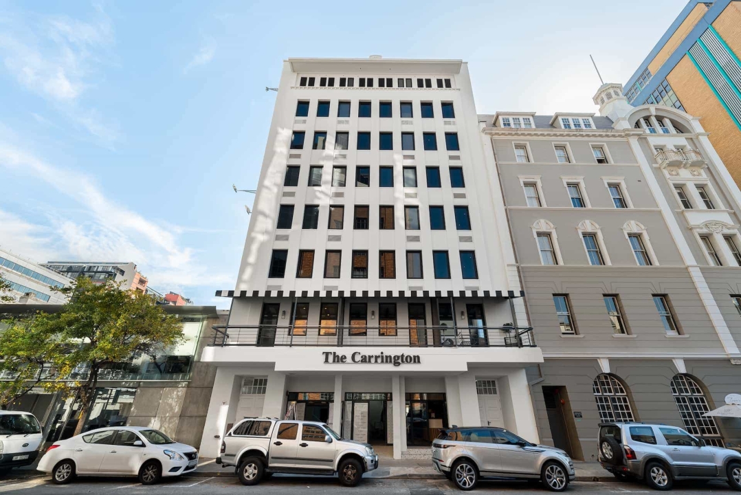 Set on Loop Street in Cape Town’s CBD, the Carrington is a multifunctional abode with sleek one-bedroom and studio apartments. Ideally located for hassle-free living, the apartment block offers easy access to Cape Town’s bustling city centre and a wealth of excellent restaurants and bars, shops, and other services.