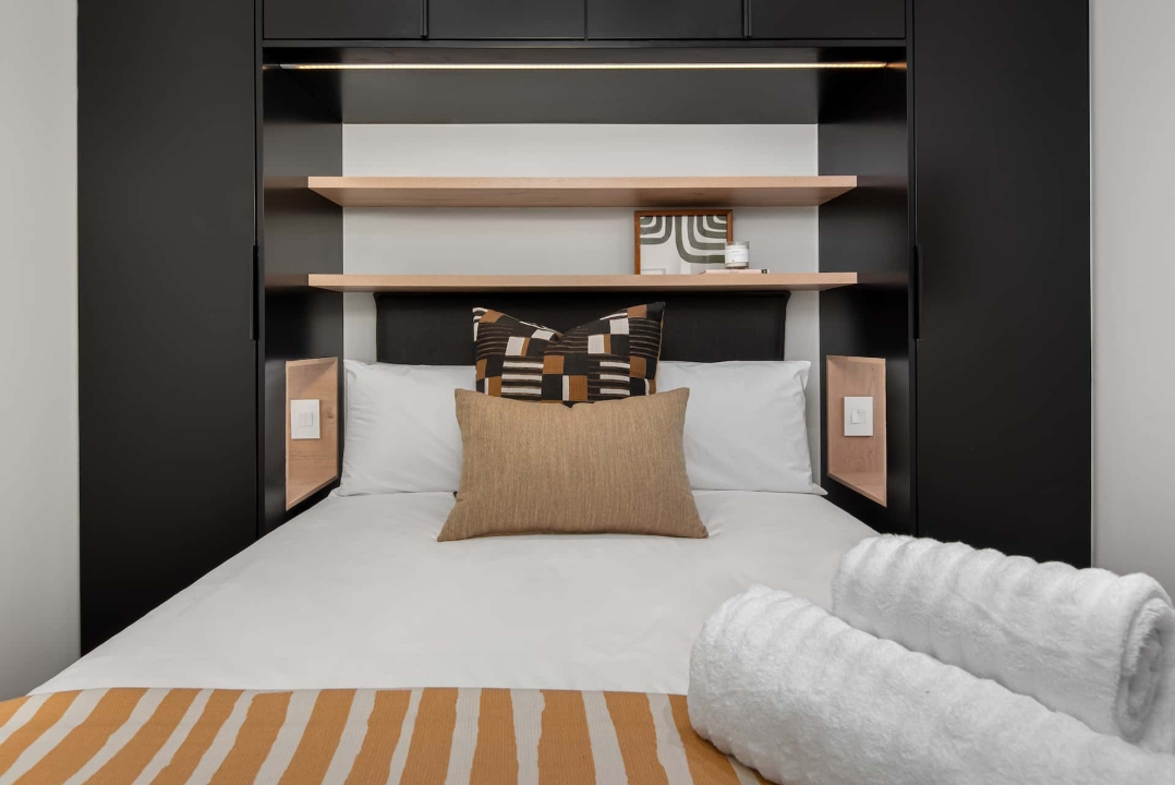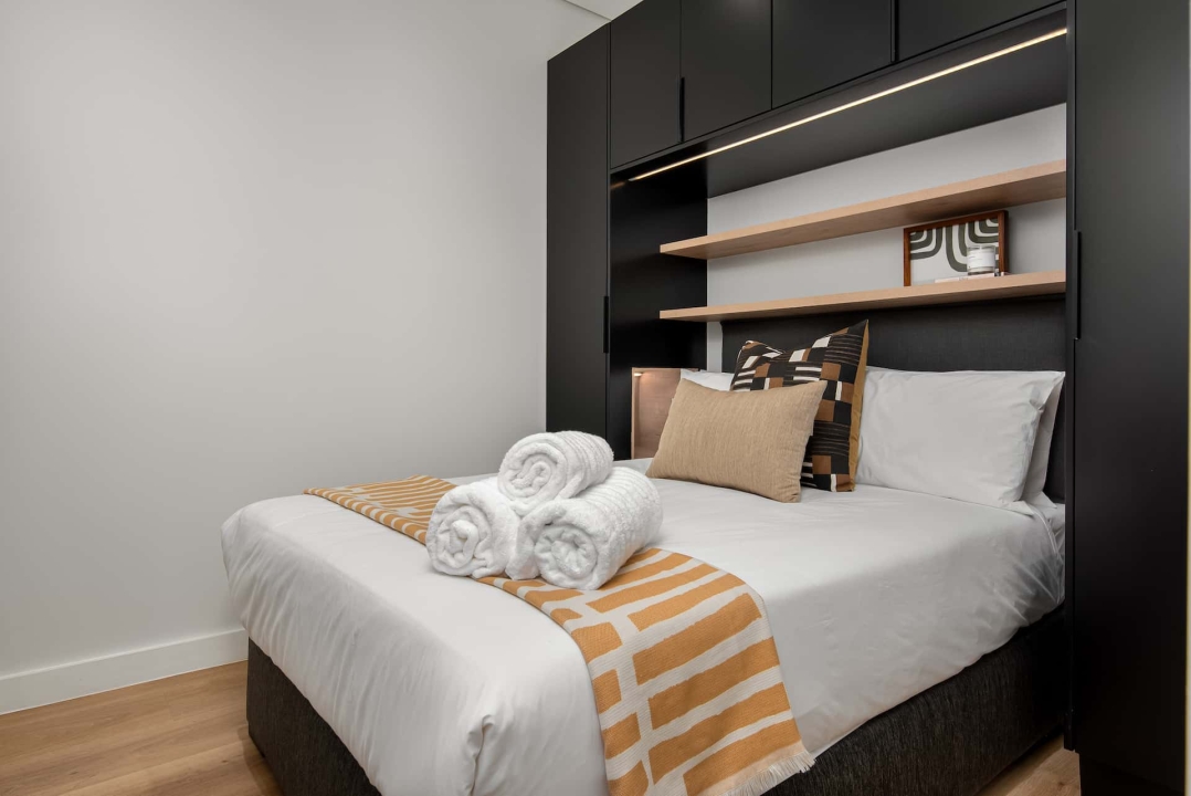 Bedrooms have premium bedding, ample cupboard space, en-suite bathrooms with rain showers, and chic finishes. Modern amenities in each apartment include high-speed wireless Internet access, Smart televisions with satellite channels, daily housekeeping services, and luxury welcome packs.