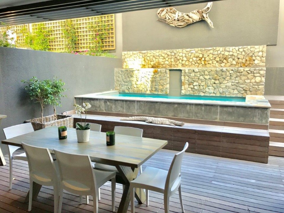 A gorgeous and airy 2 bedroom apartment in the heart of vibey Green Point. This is a brand new modern and secure block next door to top Cape Town restaurants, cafes and a stone’s throw from night life. Neutral decor will leave you pleasantly relaxed. You get your very own private plunge pool to get some relief from the Summer sun in Cape Town. Secure parking and a quick walk to the promenade should seal the deal.