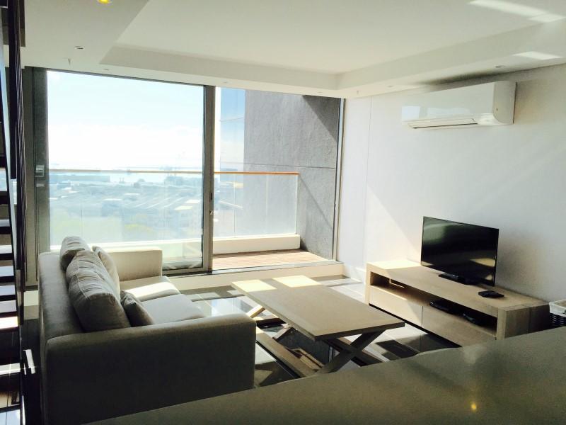 Upon entering apartment, you are greeted with a stunning 180° view of Cape Town’s working harbour, Robben Island, Table Bay and the west coast in the distance.
