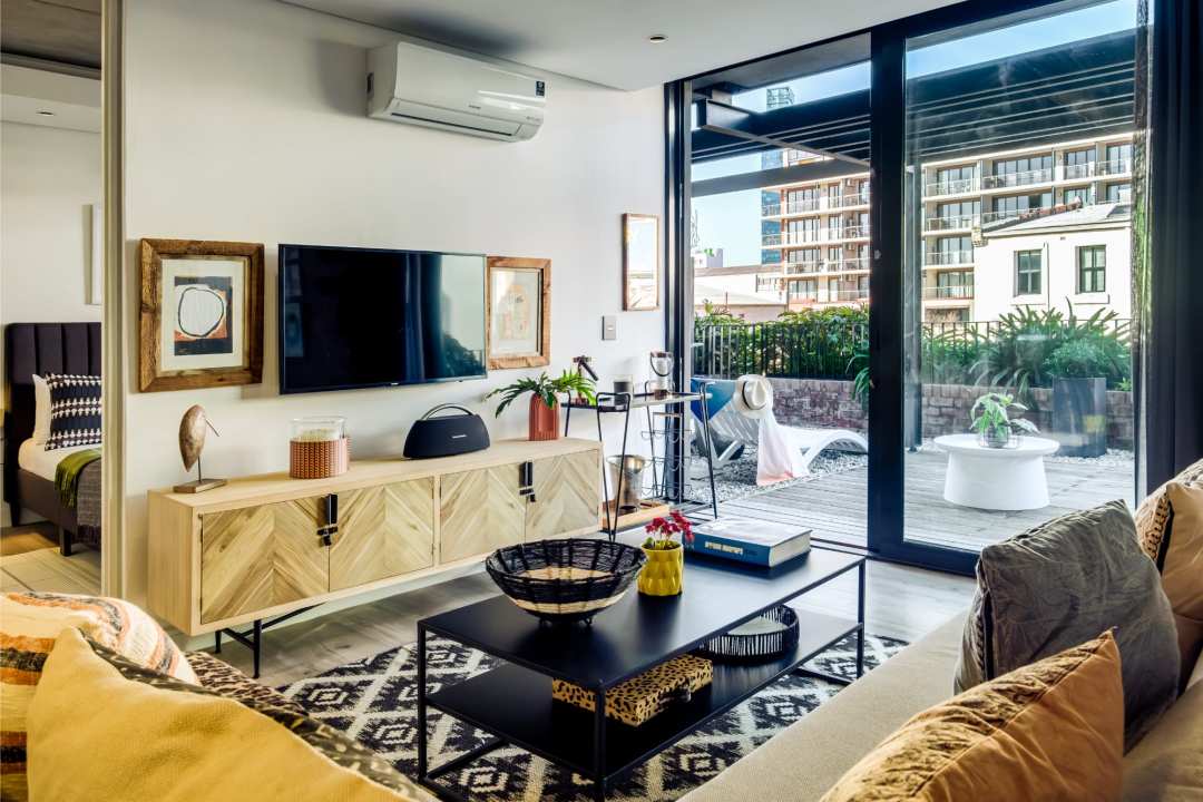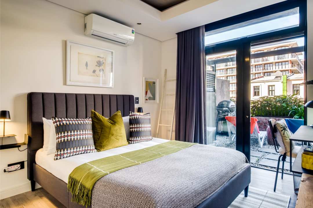 The Urban Edge is a chic retreat in the heart of De Waterkant, offering a sophisticated one-bedroom apartment that exudes contemporary elegance and modern comfort. The stylish living space features plush seating for four, a sleek TV, and a separate study area with a desk. The adjacent kitchen is equipped with an electric hob, Nespresso machine, dishwasher, washer, and dryer, ensuring every convenience is at your fingertips. Retreat to the tranquil bedroom with a queen bed, air conditioning, and partial mountain views, complemented by a dedicated bathroom with a refreshing shower and single vanity. Outdoors, the apartment delights with a private balcony perfect for al fresco dining, equipped with a gas BBQ, seating for four, and sun loungers for relaxation. Whether unwinding after a day of exploration or hosting an intimate gathering, this stylish apartment seamlessly blends urban sophistication with comfort, offering the perfect escape in De Waterkant