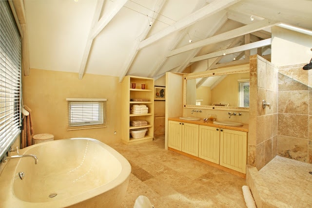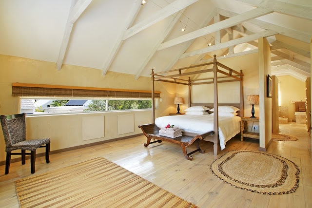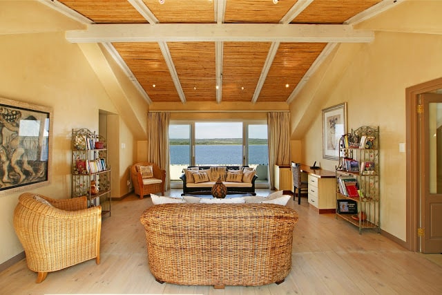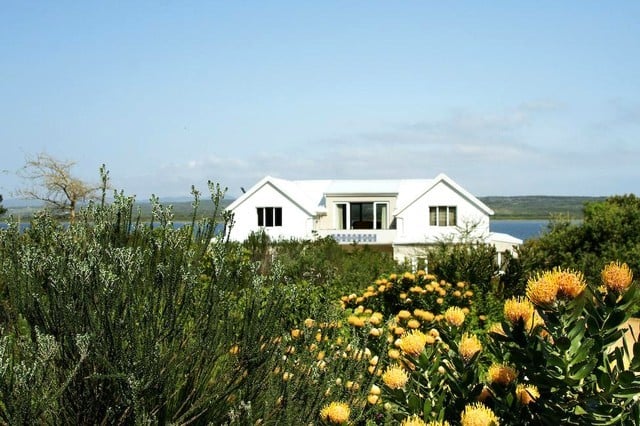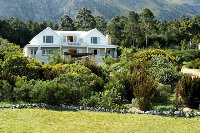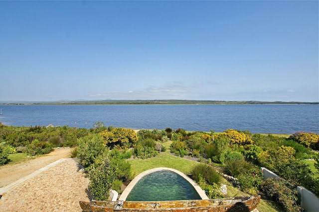 Situated 6km East of Hermanus on a private estate. Positioned in between mountains and a lagoon, the property gives the feeling of water and life flowing down the mountains, through the gardens and into the house.