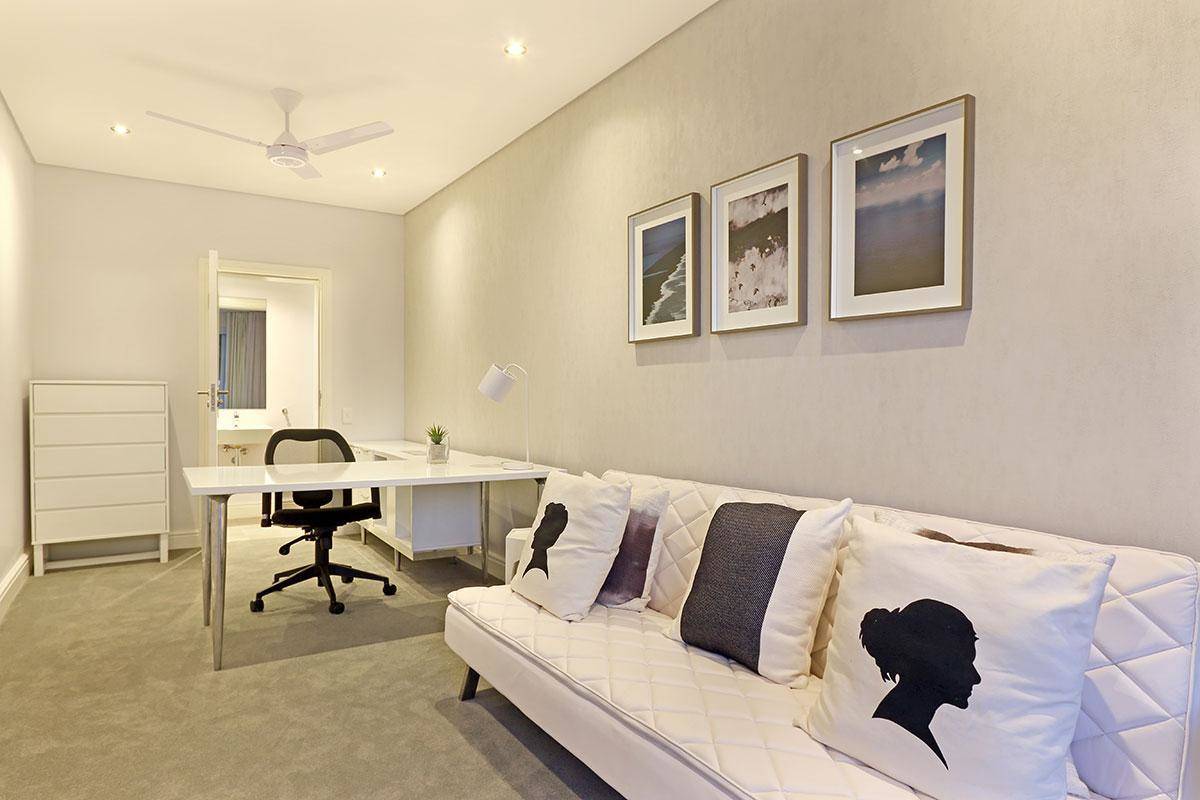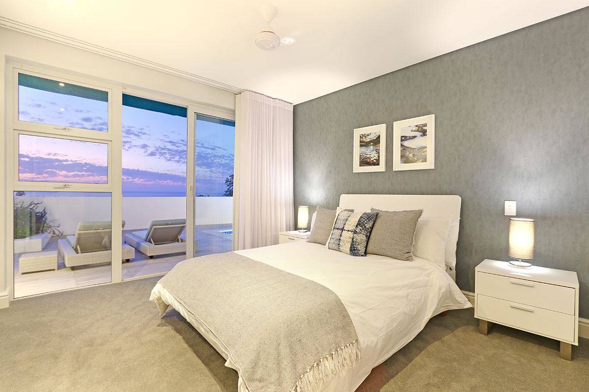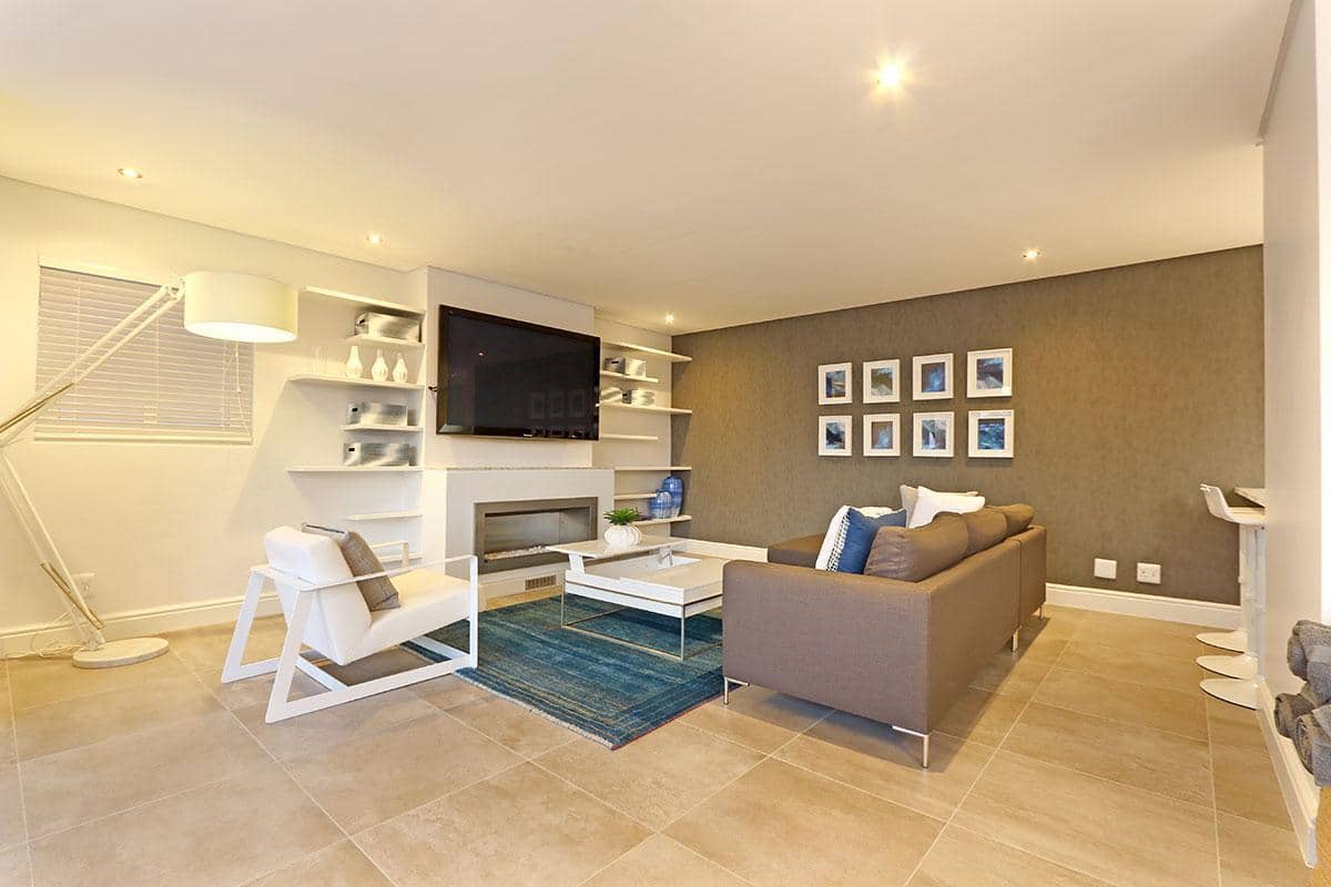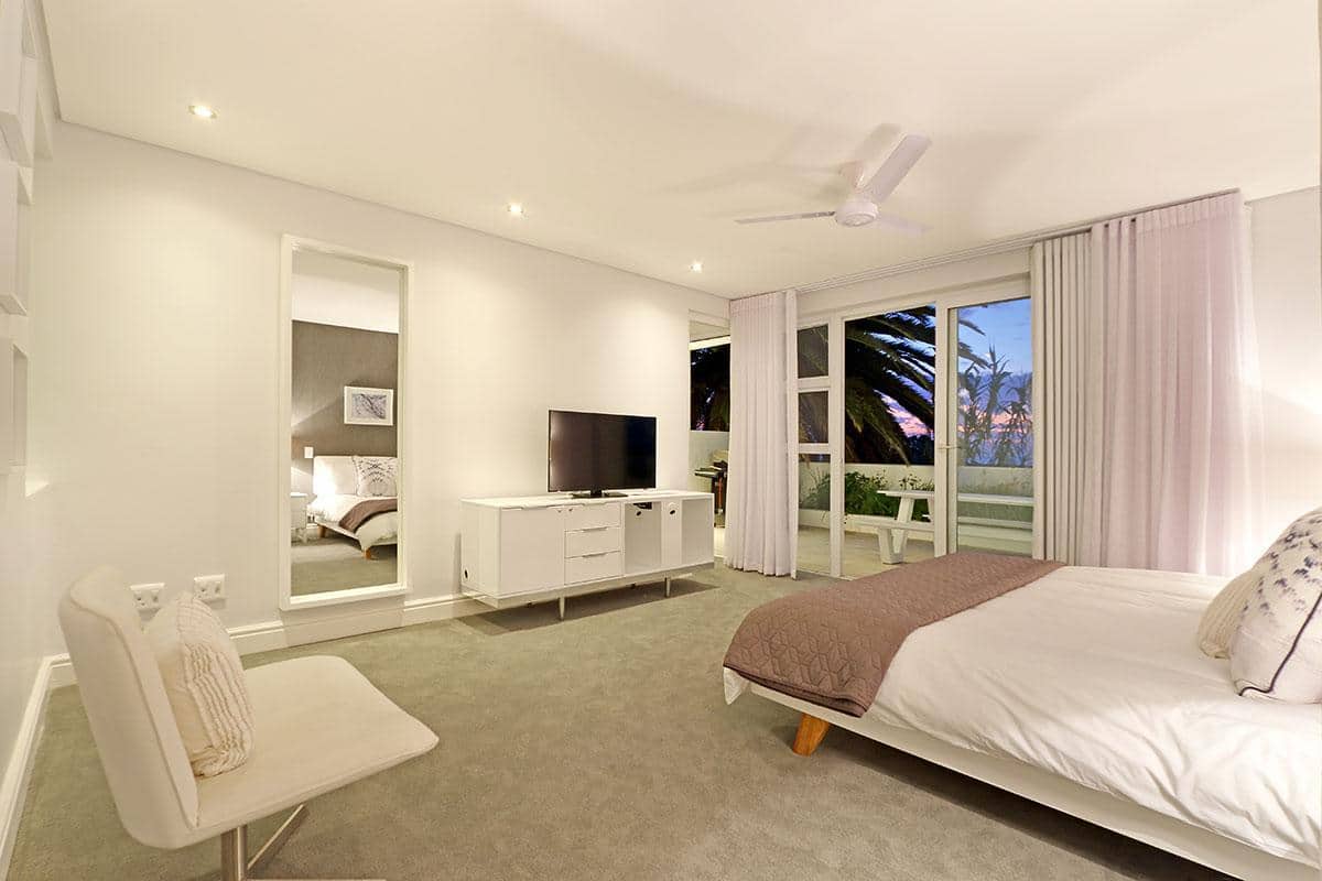 The house is within walking distance from the Camps Bay Beachfront and a 10 minute drive to the V&A Waterfront. Off-street parking for two vehicles. Enter the property through security gates and a lift down to a beautiful long patio with outside lounge seating and swimming pool, covering the full front of the property overlooking the bay.