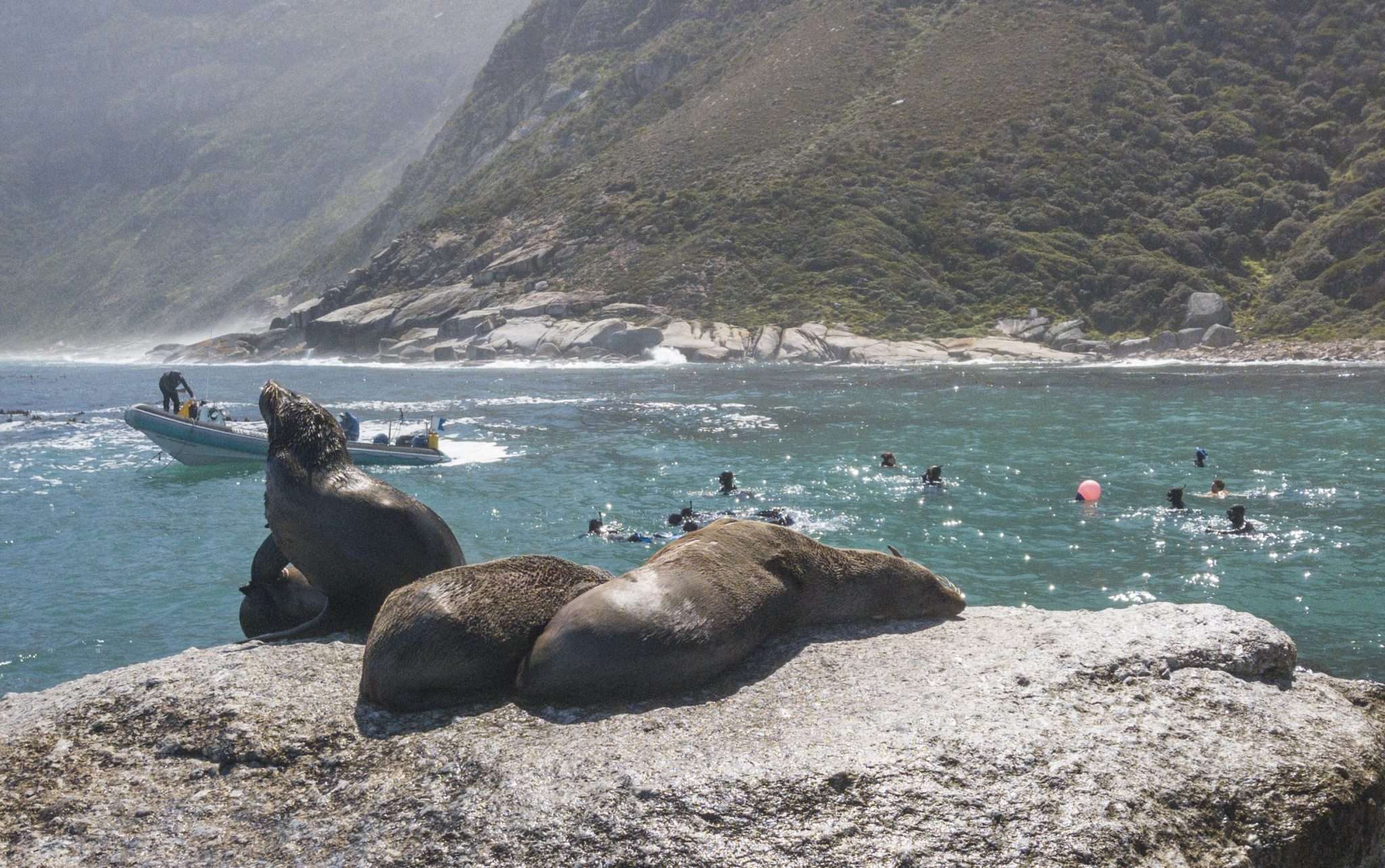 Our 8m Rib (inflatable boats) take up to 10 snorkelers and will get you to the seals quickly and safely. Fur seals are most active and abundant in the heat of Cape Town’s summer.