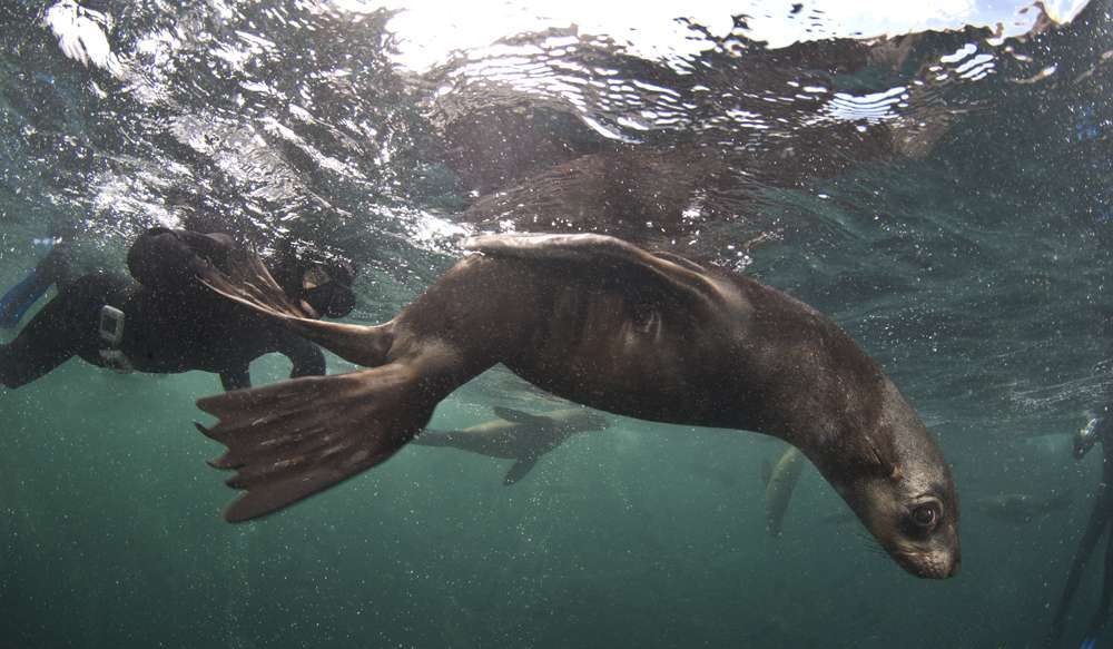 Seal Snorkeling in Cape Town with Animal Ocean is the most amazing experience you can have on your holiday. We are the seal snorkeling experts and are dedicated to getting you in the water. Our Snorkel Center, in Hout Bay, has amazing facilities – Hot showers, Private changing rooms, Free Wifi and Coffee. Animal Ocean’s vessels take up to 10 seal snorkelers and will get you to the snorkeling site at Duiker island quickly and safely. Cape Fur seals are most active and abundant in the heat of Cape Town’s summer.