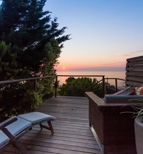 The Modern two level guest house is set away from the main house amid a beautifully landscaped garden. After entering through your private entrance your path opens up, through the lush garden to a spectacular ocean view from your own sun terrace and deck chairs to lounge on. Steps continue through the garden from your private terrace where you enter a large grass area and lavish rim flow pool, complete with floating day bed for plenty of pool side lounging.
