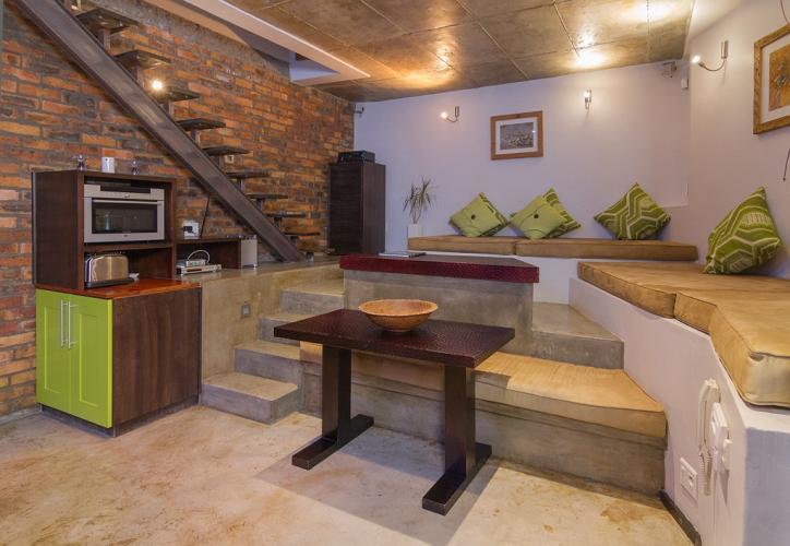 The entrance is on the lower level and opens up into a split level living area with modern cemcrete flooring. The kitchen is modern and fully equipped with appliances for your convenience and pleasure. Food and beverages can be enjoyed out on the terrace or at the inside dining table. Taking 3 steps up on the lower level you have an open lounge area with spacious seating and a mounted large flat screen TV where you can enjoy anything from DSTV to MTV, movies and all the MNet Super Sports channels as well as a selection of over 300 movies on Apple-TV. And if TV is not your thing, the view is breath-taking from anywhere on the lower level.