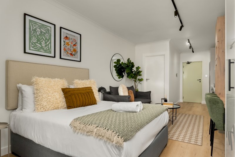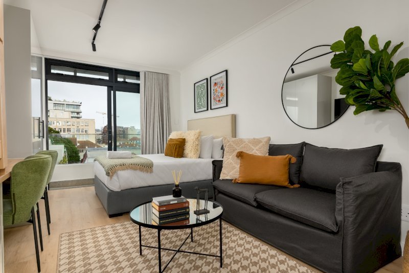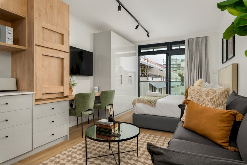 Escape to this charming studio apartment in Sea Point, offering the perfect base to enjoy the best of Cape Town. The apartment is nestled in a brand-new building just a stone’s throw away from the popular Sea Point Promenade. The V&A Waterfront is just a 10-15 minute drive away, and a scenic 10-15 minute drive takes you to Table Mountain. Alternatively, take a stroll or drive down to the world-famous Clifton and Camps Bay beaches.