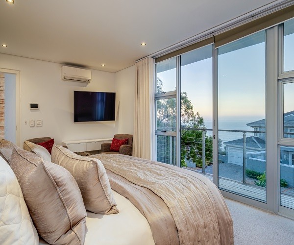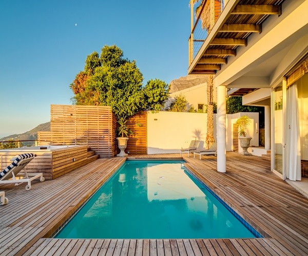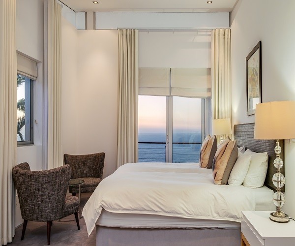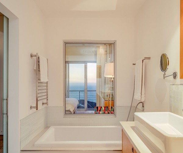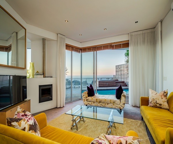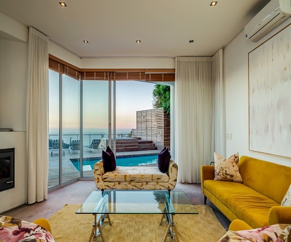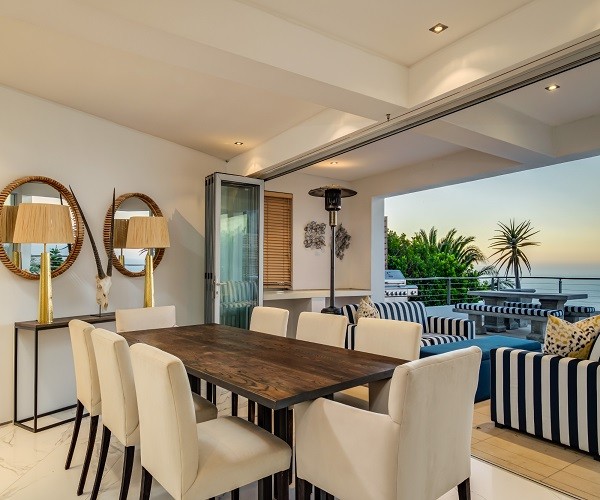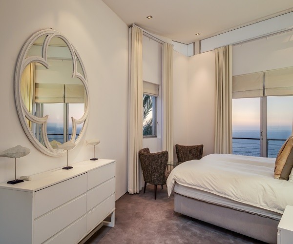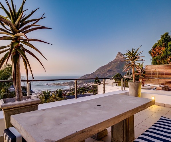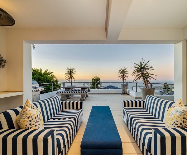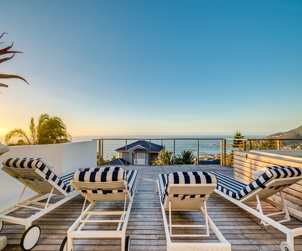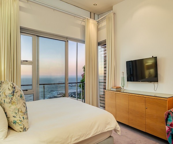 Step inside this gorgeous villa and feel instantly at home. Unwind in the lounge, with furniture in warm tones and floor-to-ceiling windows; this room is lovely and light. Sit back and relax in one of the comfortable couches while enjoying the ocean views. Doors lead out onto the pool terrace, jacuzzi and garden area. The modern kitchen has all the essentials, as well as laundry facilities, a dishwasher and a Nespresso machine. This leads into the dining area which has seating for 8 guests. There are 5 en-suite bedrooms. Four are situated on the top level and the 5th a Garden Suite on the lower level. Each of the 5 bedrooms enjoys uninterrupted sea views, balcony access and its own en-suite bathroom. Outside is a large patio where you will find outdoor dining, lounge furniture and a swimming pool, jacuzzi and outdoor shower. Bakoven beach is only 5 minutes away, as are the more popular beaches of Clifton and Camps Bay. There are a number of restaurants and bars in the vicinity as well. Please note that this property has a strict non-smoking policy and does not allow smoking in any inside or outside areas.