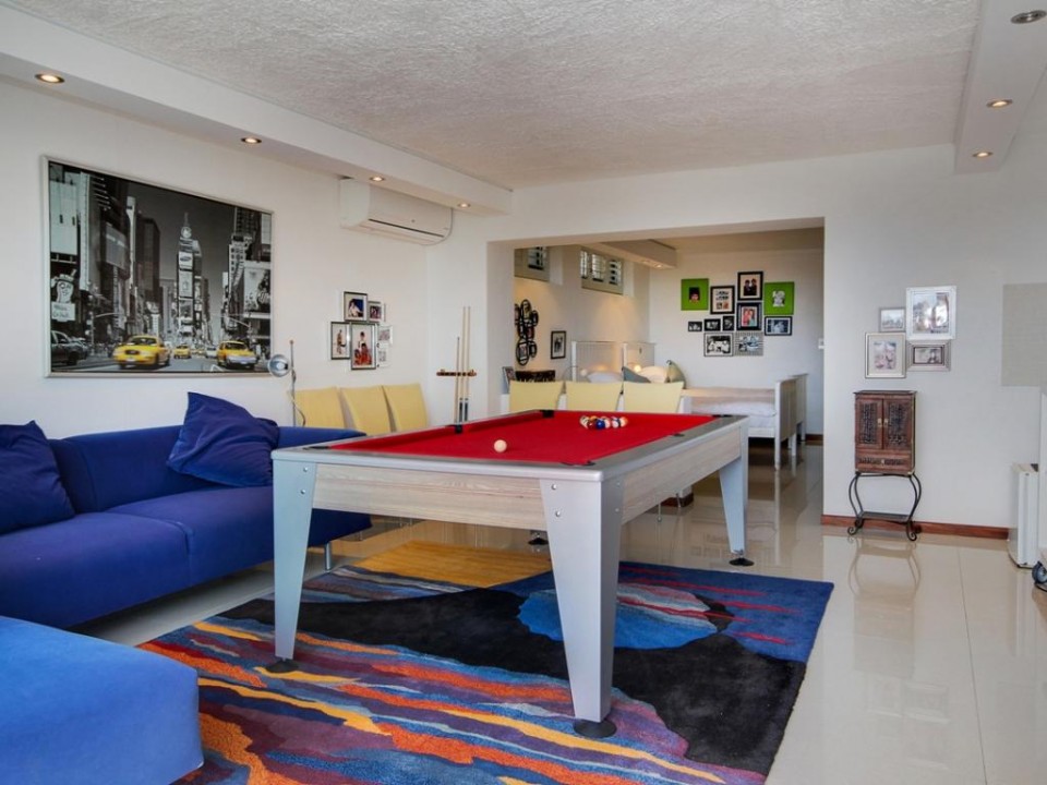 The master bedroom has Queen-size bed, an open plan en-suite bathroom, a TV, fireplace and beautiful sea views. The second bedroom has a King-size bed, the third has a Queen-size bed and the fourth and fifth have double beds.