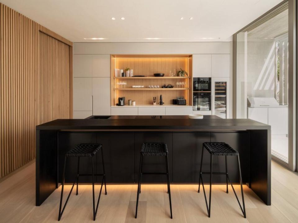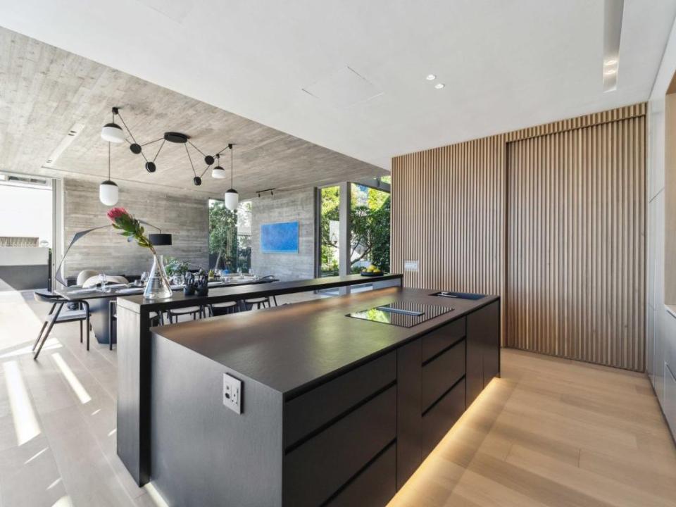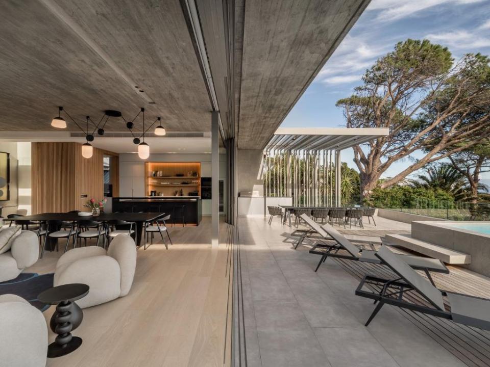 The brand-new villa in the heart of Camps Bay features a heated pool with a counter-current swimming system, a gym, a large sauna, and a wine cellar. Centrally located with breathtaking views of the sea and mountains, it boasts 5 bedrooms, 6 bathrooms (5 en suite), and a thoroughly contemporary luxurious interior.