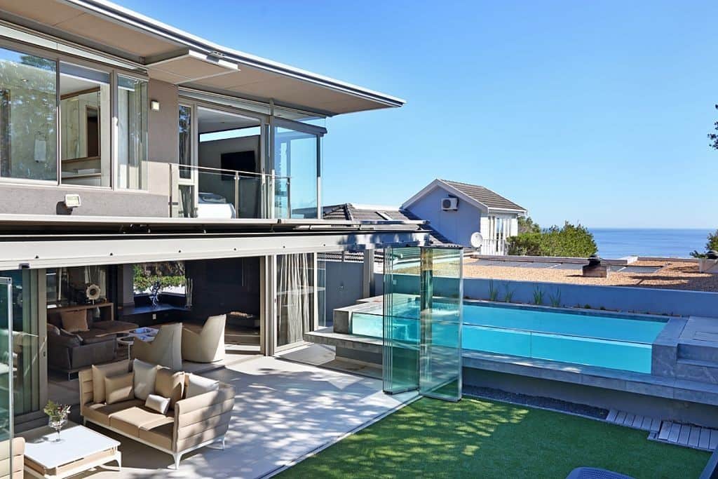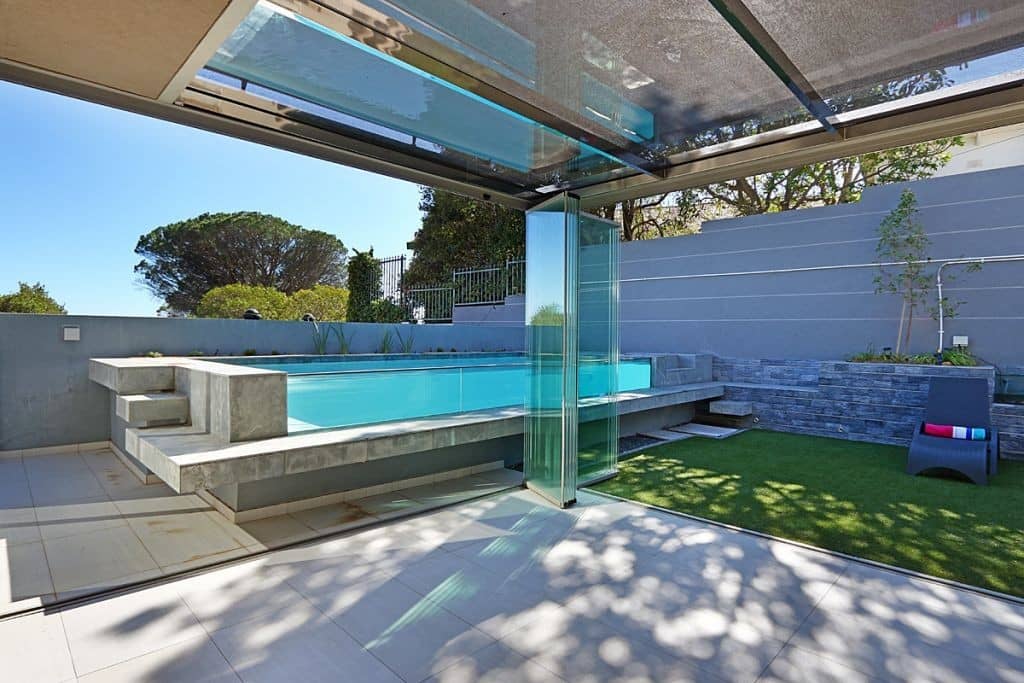 Sun room off main lounge with folding glass doors to open up completely to garden and pool area.