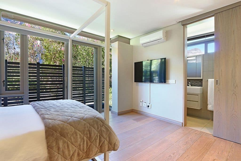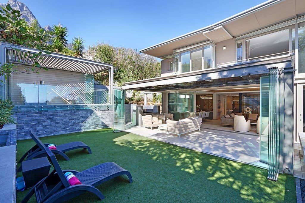 This newly built modern villa (8 sleeper) is located in a quiet road in Camps Bay and is perfect for a holiday in Cape Town.