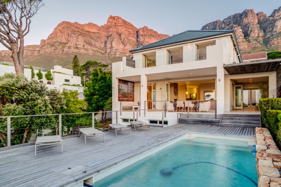 Tucked away on a quiet street in the heart of Camps Bay, Villa Olivier is a beautiful, contemporary-chic retreat with spectacular mountain and sea views. Ideal for families or groups of friends looking to enjoy Cape Town’s cosmopolitan lifestyle, this five-bedroomed house is perfectly located to explore the Mother City.