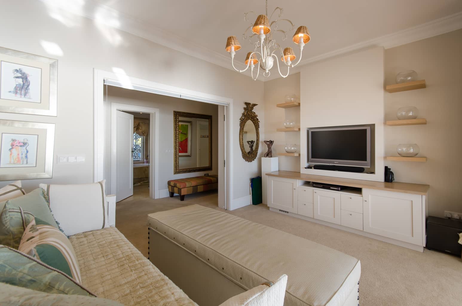 The main bedroom with en-suite bathroom is situated alongside two children’s bedrooms – which share a full bathroom. Both of the bedrooms can be made up as adult friendly rooms.