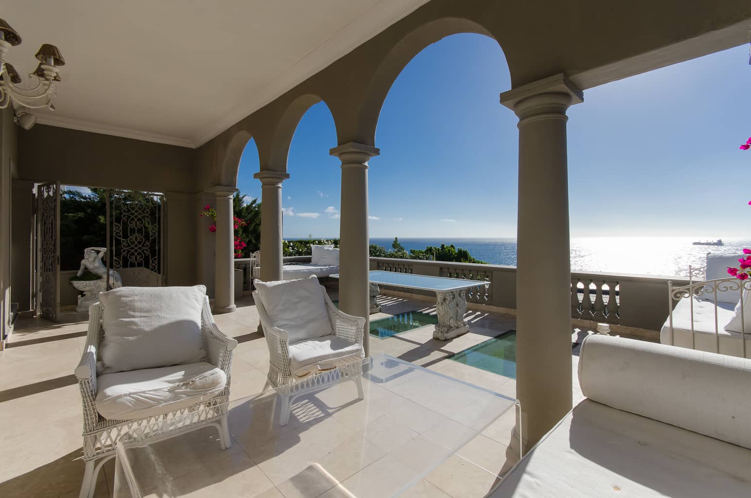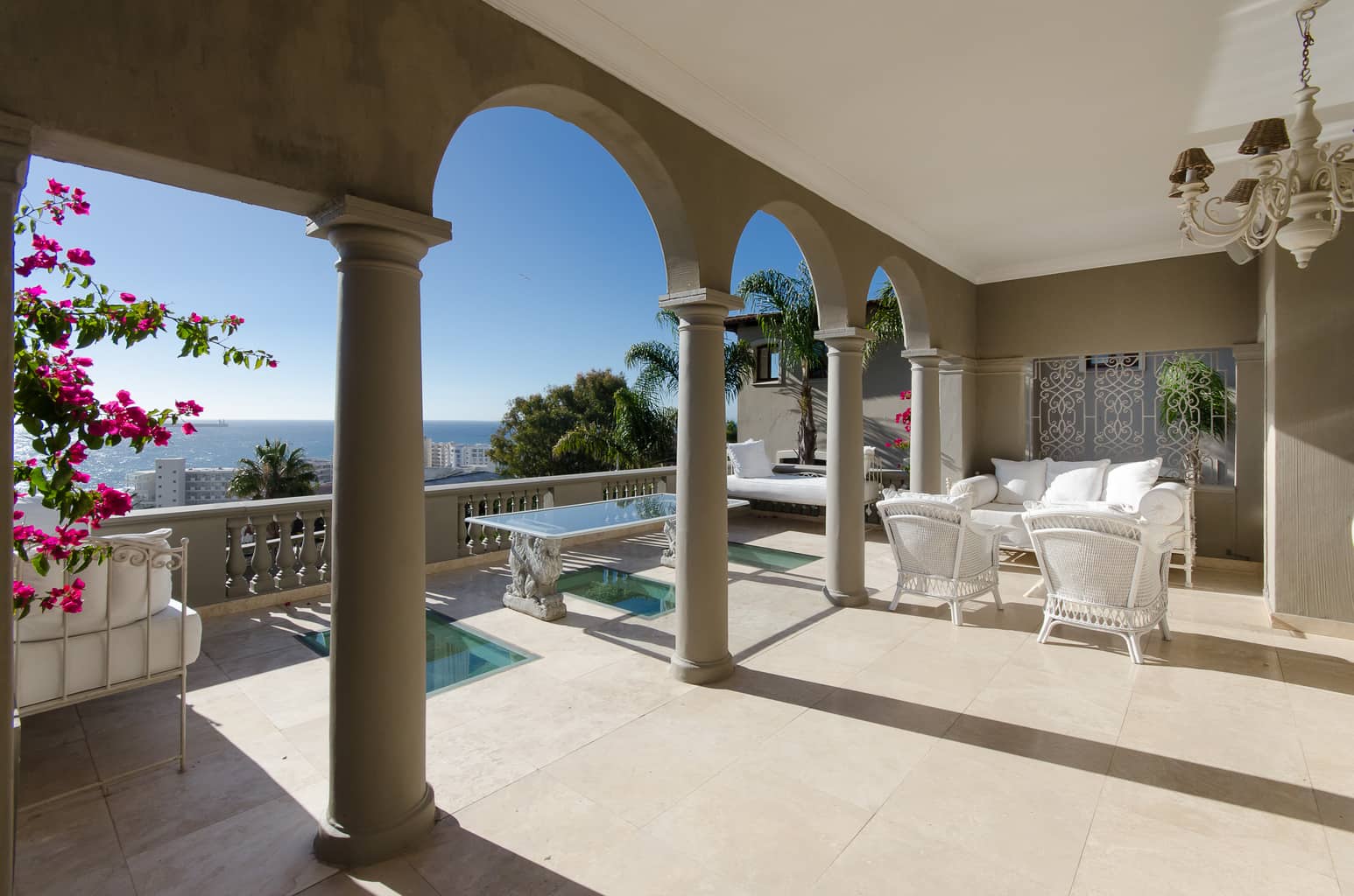 An exquisite 5 bedroom home with panoramic ocean views, sophisticated style and glamorous interiors, create an ambience of romance and serenity. Located in Bantry Bay, which is situated on the slopes of Lions Head with views across the ocean towards Robben Island and beyond.
