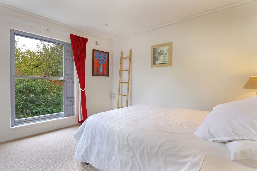 But perhaps its most defining feature is the large deck, accessed via sliding doors, which is surrounded by tall shady trees and has the gentle babbling flow of the Liesbeeck river below – a delight for breakfast in the morning air, long lunches under the umbrella, or evening drinks and BBQ/braai with family and friends. Newlands village is at the base of Table Mountain so within immediate reach of accessible mountains walks; an easy drive the Indian Ocean beaches of Muizenberg, Fish Hoek and the like; or around the mountain to the world famous Atlantic beaches of Clifton, Llandudno and Hout Bay.