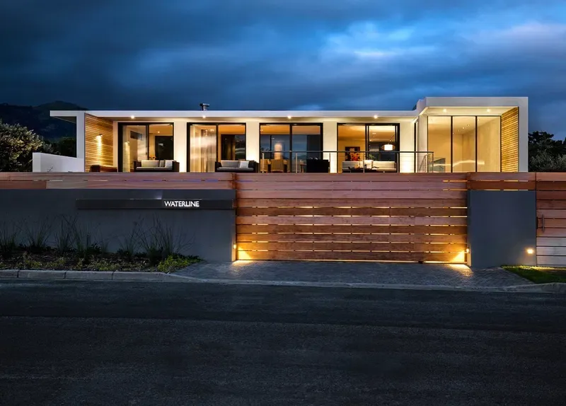 Spoiled for choice, WATERLINE offers multiple relaxation spaces with ground floor lounge, library and study flowing into the tranquil garden. On the upper level, the views take center stage with open plan lounge, dining and kitchen as well as a TV room all leading onto decks to take in the surrounds.