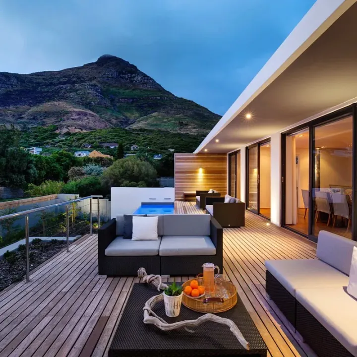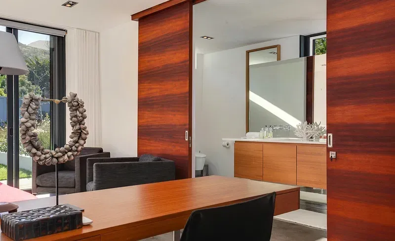 The home is just a short drive from Cape Town city center yet offers the seclusion of a relaxed rural village on arguably Cape Town’s best beach.