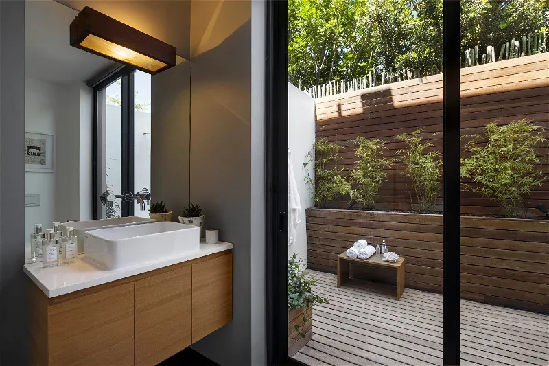 Decks overlooking the dunes, ocean and mountains lead off the upper lounge and kitchen. With external lounges both front and back and a rim flow pool overlooking the ocean, WATERLINE is designed with luxury in mind. Dine under the external gazebo while our private chef prepares your meal from our outside kitchen or relax on a sun lounger overlooking the pool.