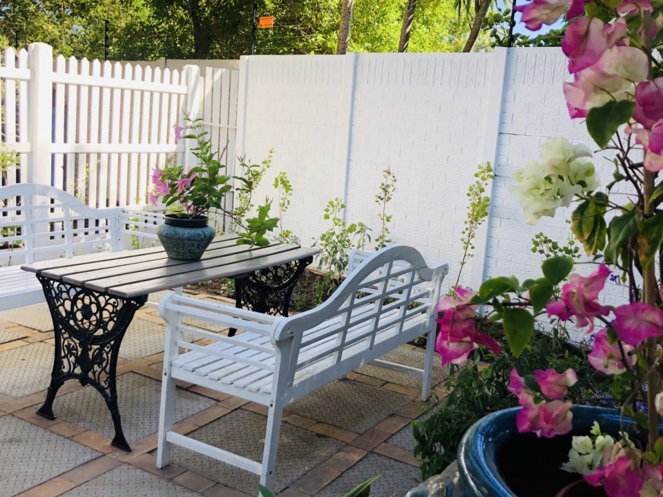 2 bedrooms both ensuite – the first has a king-size extra length bed & bath – Aircon. The 2nd; queen bed with shower. The cottage also has a lounge (Aircon) and a 4-seater dining table adjacent to an open-plan, fully-equipped kitchen. Décor and finishes with an accent on French country living. There is a secluded courtyard at the back of the cottage with an outside table and benches.