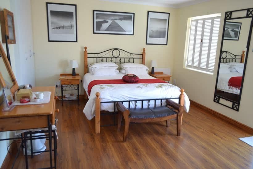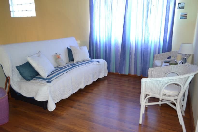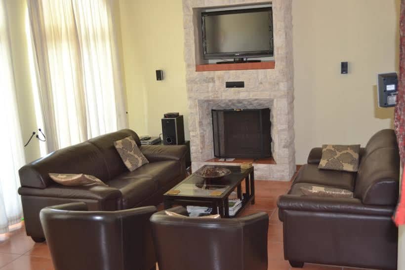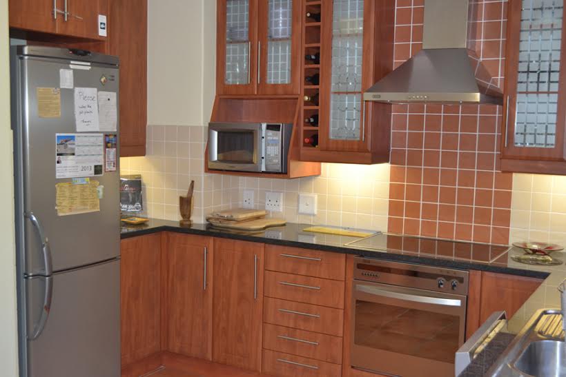 The open plan lounge with plasma TV and DSTV seats 6 people. There is also a DVD player and CD player, for those days when you’d like to unwind and just relax. This self-catering home has a fully equipped kitchen with tumble dryer, washing machine and dishwasher.