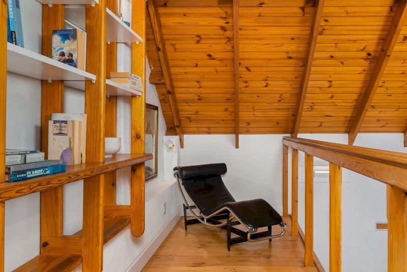 Please note that the larger of the upstairs bedrooms is a loft-like space with open rafters – it’s perfectly private but the ceiling is open to the beautiful timber rafters.